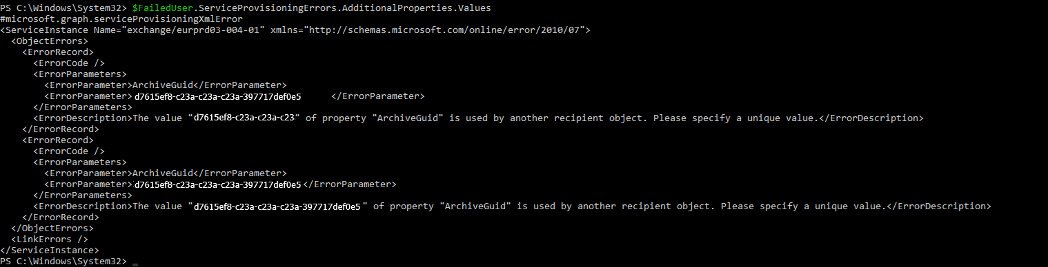 $FailedUser.ServiceProvisioningErrors.AdditionalProperties.Values